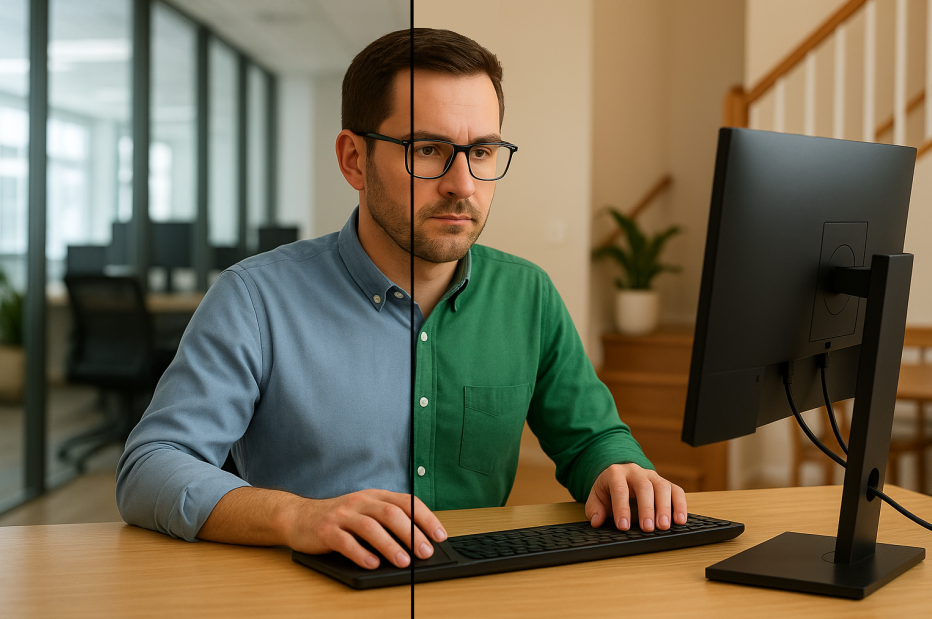 For many knowledge workers it’s become a Hybrid world, working some days at the office and some days from their home office. The Flexible Location Work Model for knowledge workers, commonly known as ‘Hybrid’, is ubiquitous today and actually on the rise in 2025, yielding significant benefits for employers and employees using computers for their work. The flip-side of that reality involves the rising incidence of neck, back and other pain incidence in hybrid workers.